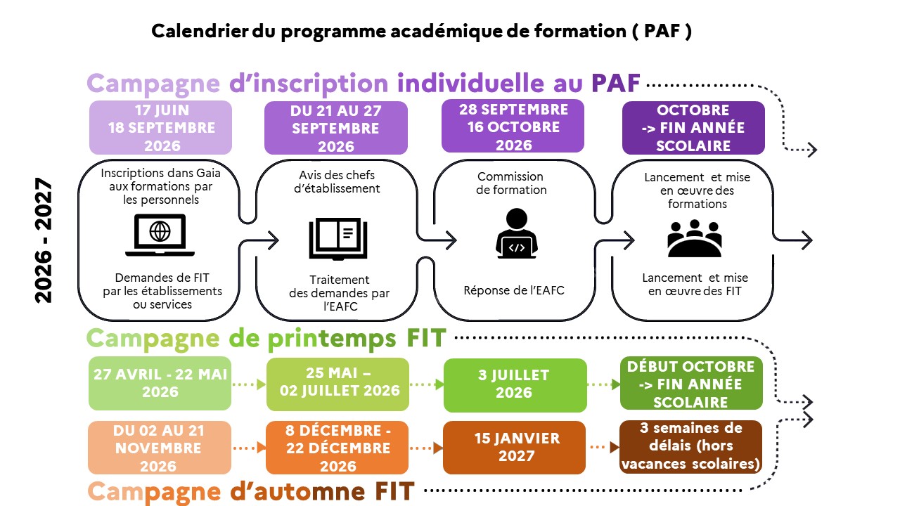 Calendrier du plan académique de formation 2026-2027