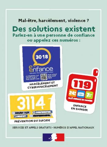 - Affichage des numéros obligatoires : 3114 ; 3018 ; 119